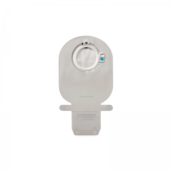 SenSura® Mio Bolsa coletora drenável sistema de 2 peças confortável de aparência discreta e natural com sistema de acople audível por um click com botão de travamento sinalizado na cor turqueza e aro de ajuste que permite o reposicionamento da bolsa no abdômen em formato ondulado, conferindo maior flexibilidade e segurança. Apresenta filtro exclusivo circular completo e fechamento em envelope com velcro sinalizado na cor turquesa. Base adesiva vendida separadamente