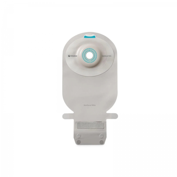 SenSura® Mio 1 peça Convex Profunda drenável combina a exclusiva Tecnologia da base adesiva elástica com linhas flexíveis integradas que fornece contato corporal seguro, pressão significativa na pele alterarando a protrusão do estoma e um encaixe flexível durante o movimento com bolsa coletora confortável de aparência natural para o máximo de segurança e discrição com janela de inspeção, filtro exclusivo circular completo e fechamento em envelope com velcro sinalizado na cor turquesa.